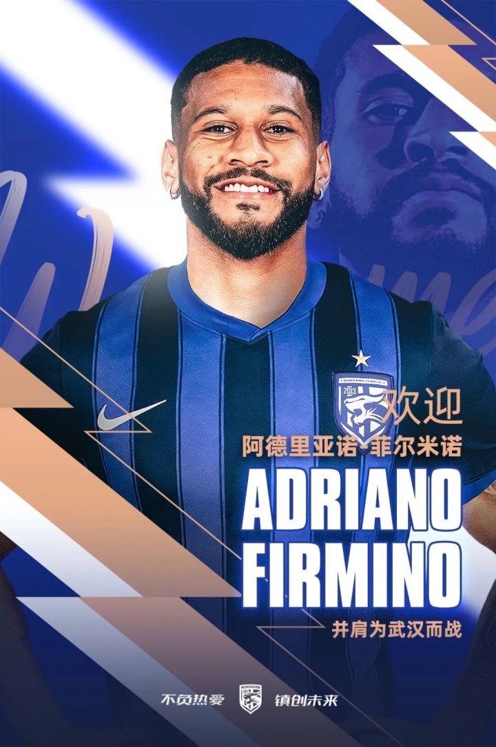 欢迎阿德里亚诺·菲尔米诺加入三镇大家庭,期待他快速融入球队,与队友们一同迎接新的挑战。